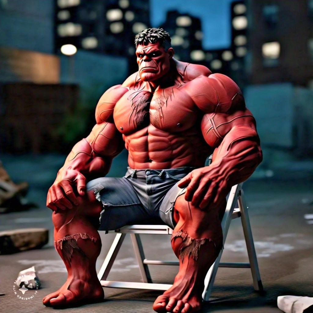 I turn and see someone who looks like Thunderbolt Ross’s Red Hulk.