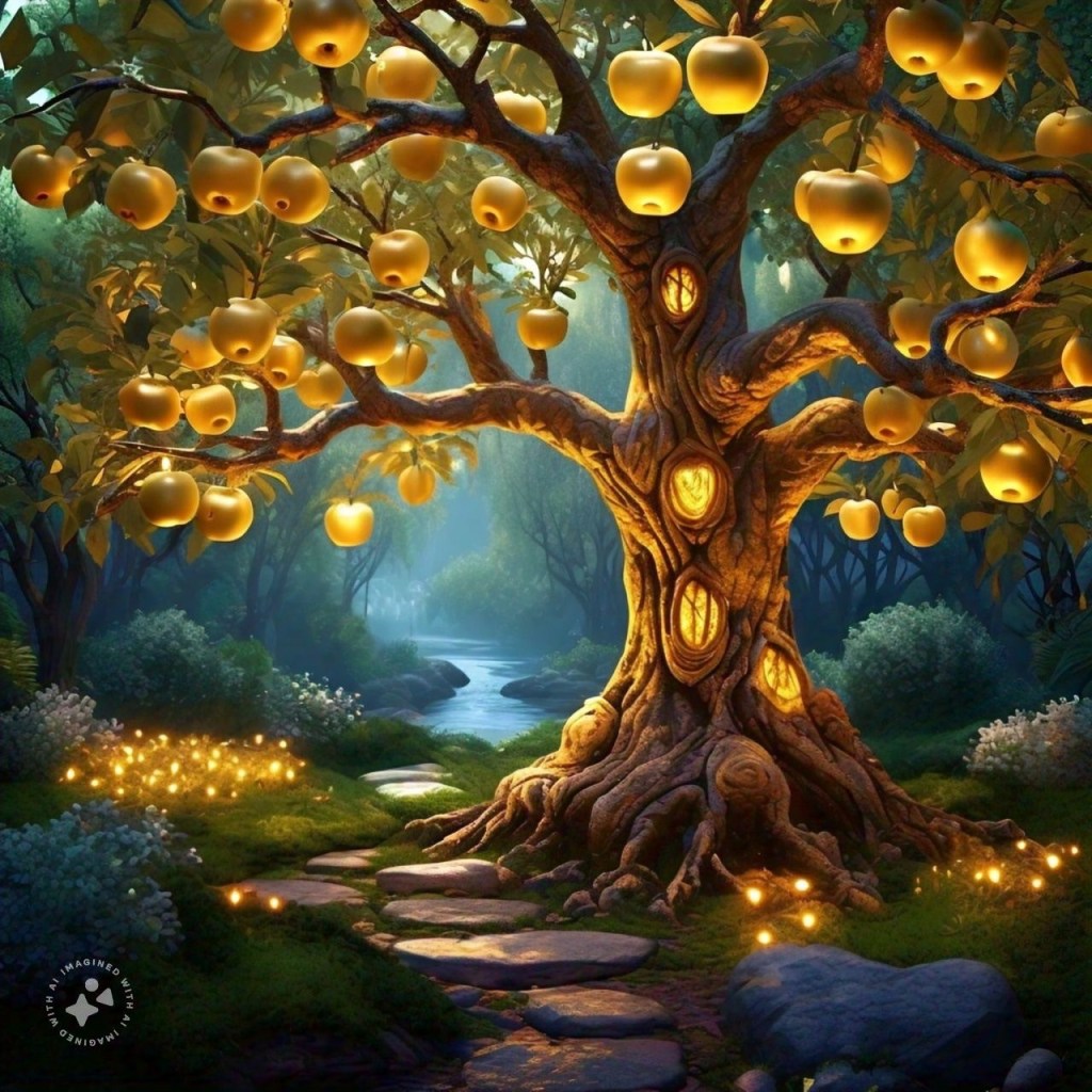 DM: And so, the Golden Apple brought light and hope to the cities of man, and the people rejoiced. The tree grew strong and tall, a symbol of the power of love and courage. And the Lord looked upon the tree, and saw that it was good. And the people prospered under its shade, and the cities flourished as the City of God.