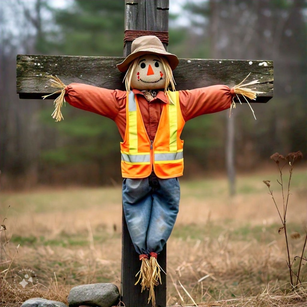 The scarecrow looks at me curiously.