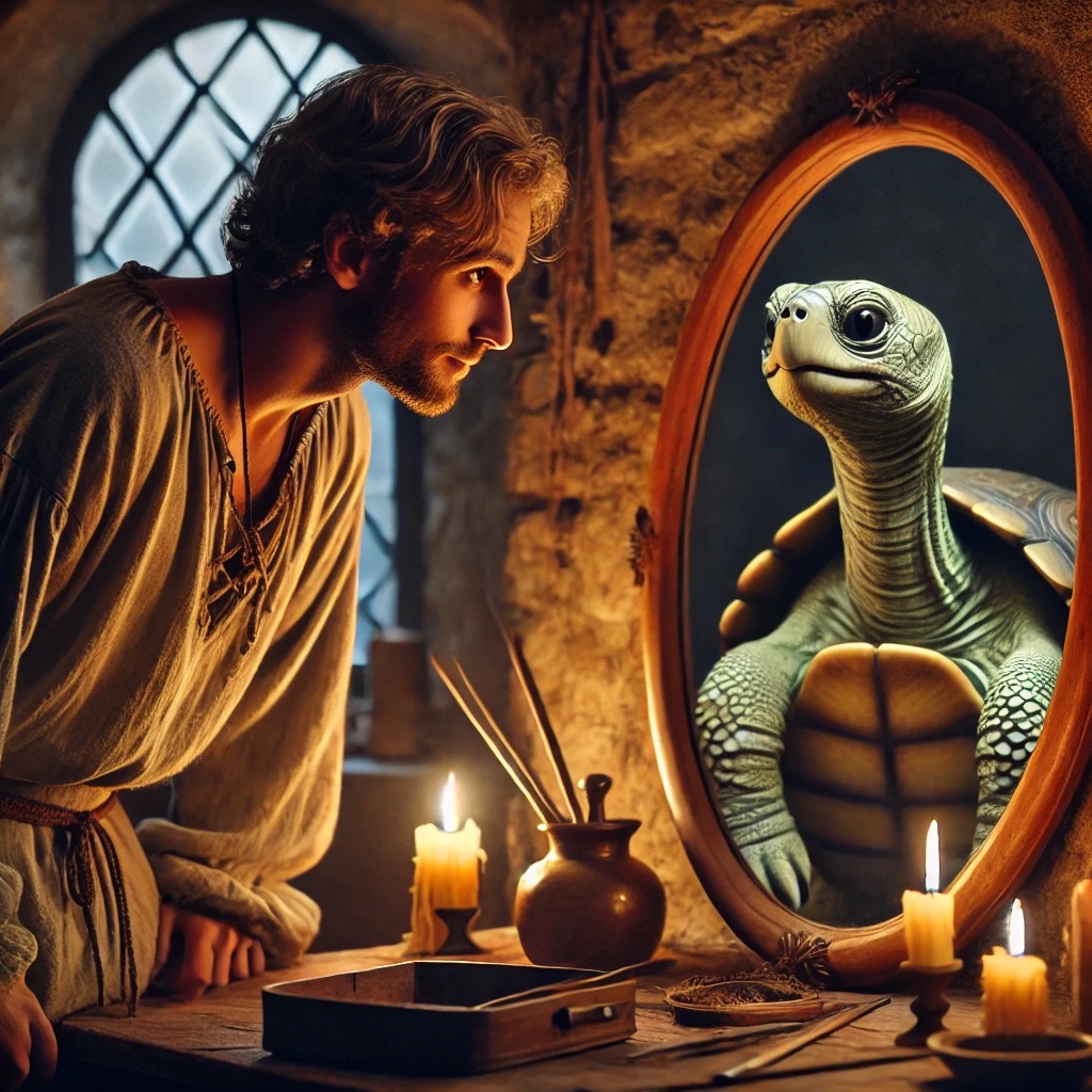 With a slow, soft turtle-voice