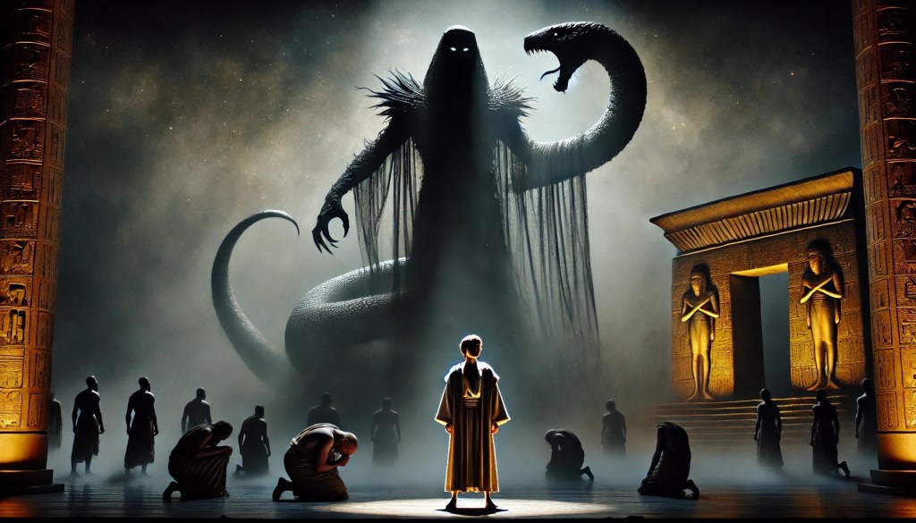 But there is one—one whose dreams threaten to undo me. A boy, fragile as clay, yet daring to defy the tide. Watch now as I coil around him and crush his God-given hope beneath the weight of my might. Joseph! Your downfall begins today.”