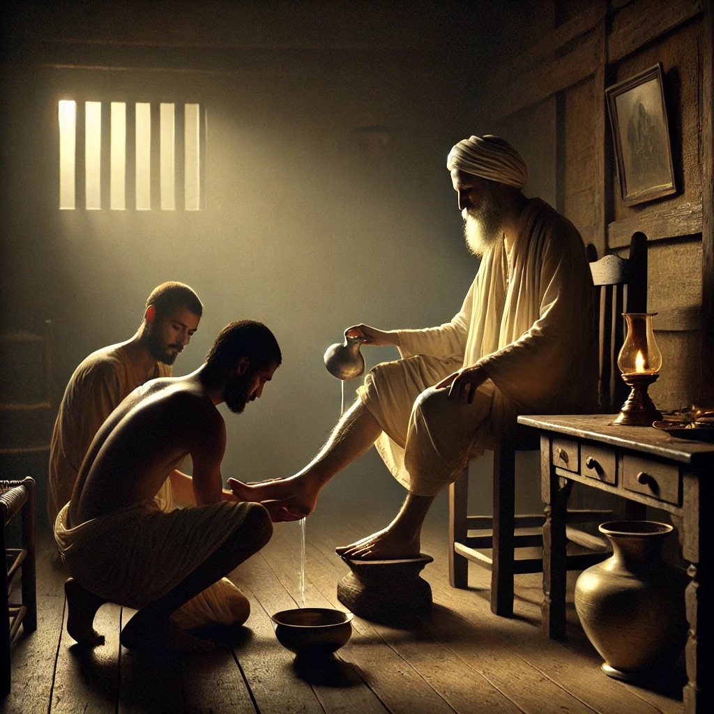 The man spoke softly, his words carrying weight as if they pressed into the air. “You have given more than enough. The water cleanses, the hands serve, the oil honors. But your hearts—your hearts are the greatest gift of all.”