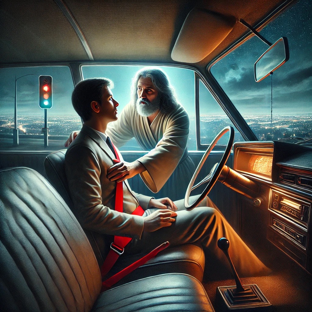 A strange man gets into the passenger seat
