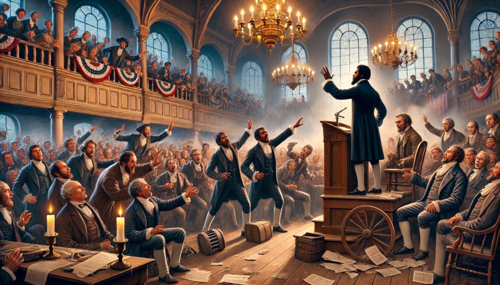 A man—one of the Southern delegates, red-faced and shaking—shoved his chair back, hands balled into fists.