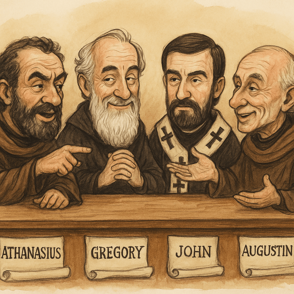 Hmm. Ecstatic agony, you say. That’s almost erotic. I rather like it. Reminds me of what I called “divine eros” in my Fifth Theological Oration. Though you walk a dangerous path—difference must be borne without division. The Trinity is not tension, but harmony.