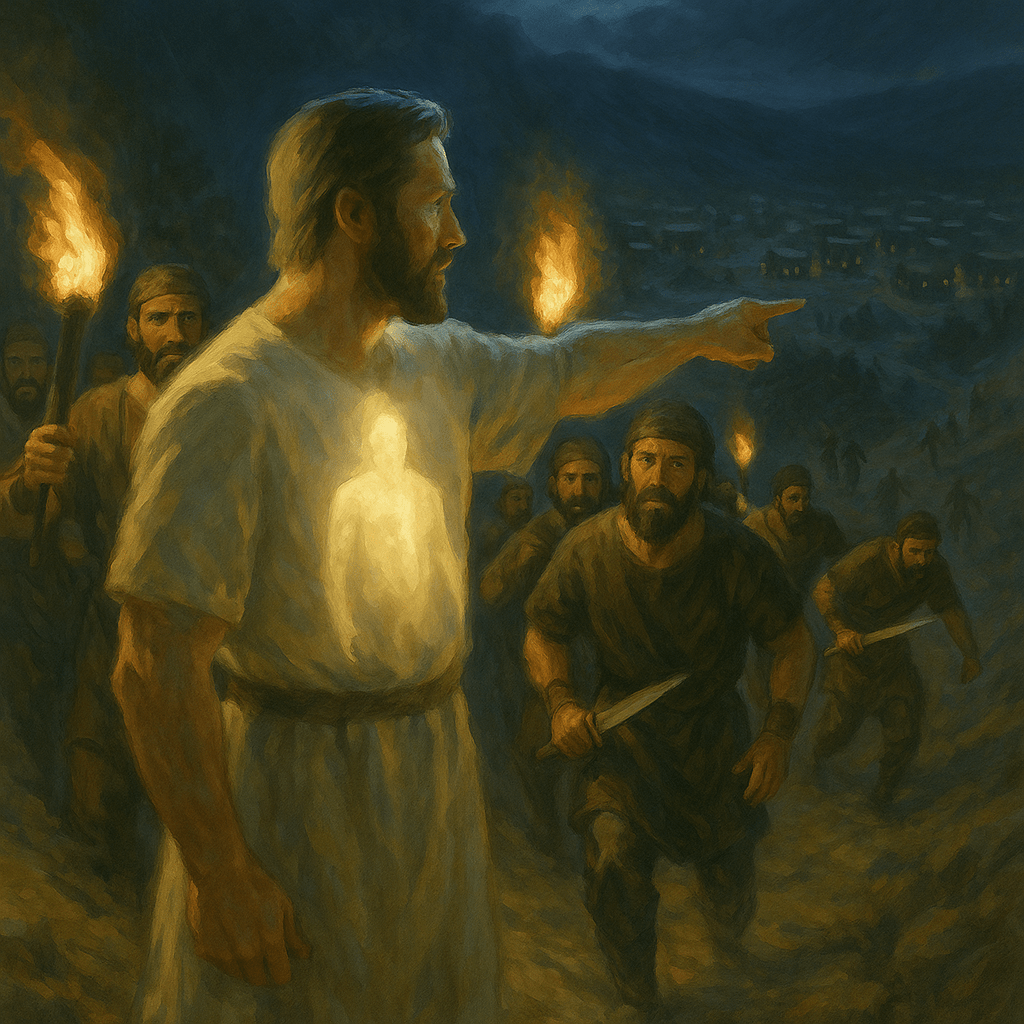 Just before midnight, after the changing of the Midianite guard, Gideon and his hundred men came to the outskirts of the camp. Then each of the three groups blew the shofars and broke the clay jars that hid the torches inside. They held their torches in their left hands, the shofars in their right, and shouted a thunderous battle cry, “A sword for Yahweh and for Gideon!”