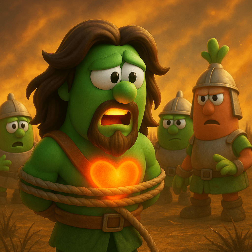 They bound him with two brand new ropes and led him from the cave near the cliff of Etam to Lehi. When the Philistines saw Samson coming, they raised a shout of triumph. Immediately, the mighty Spirit of Yahweh came rushing upon Samson! He snapped the ropes off his arms as if they were strings catching fire, and they fell from his wrists. He spotted a raw jawbone of a donkey lying there on the ground and picked it up. He began to swing it wildly and used it to kill a thousand Philistines that day.”