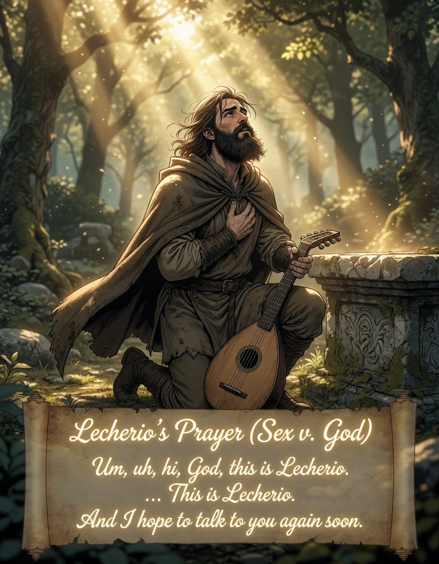 Um, uh, hi, God, this is Lecherio. This is kind of weird. I know that’s mostly Ernest’s thing, but maybe that’s the whole point, is that I, uh, I guess I need to learn to start talking to you from this vantage point.